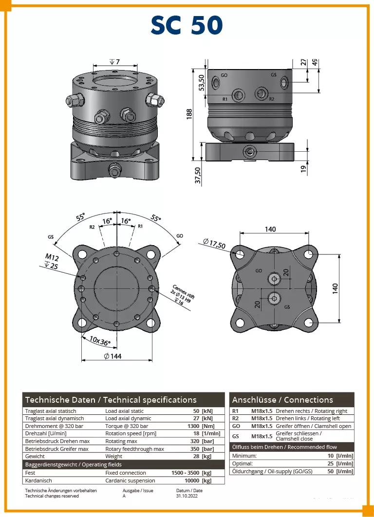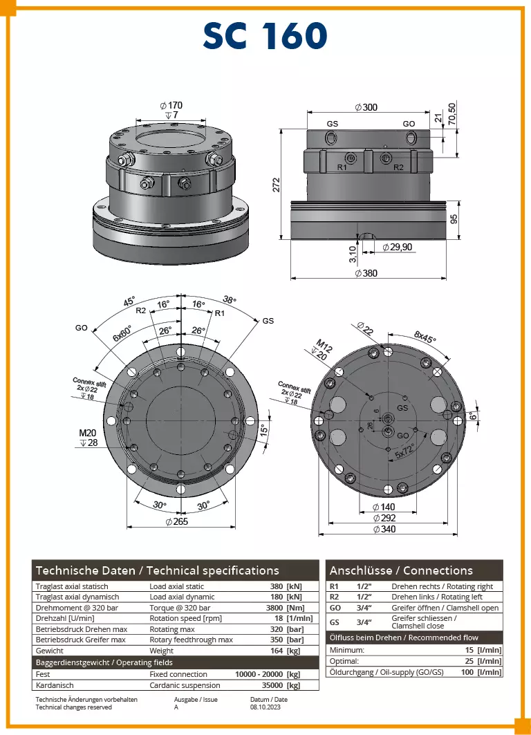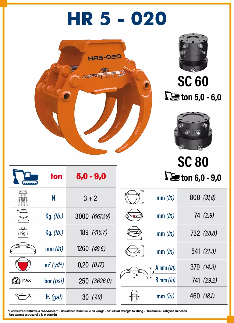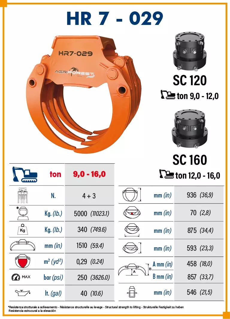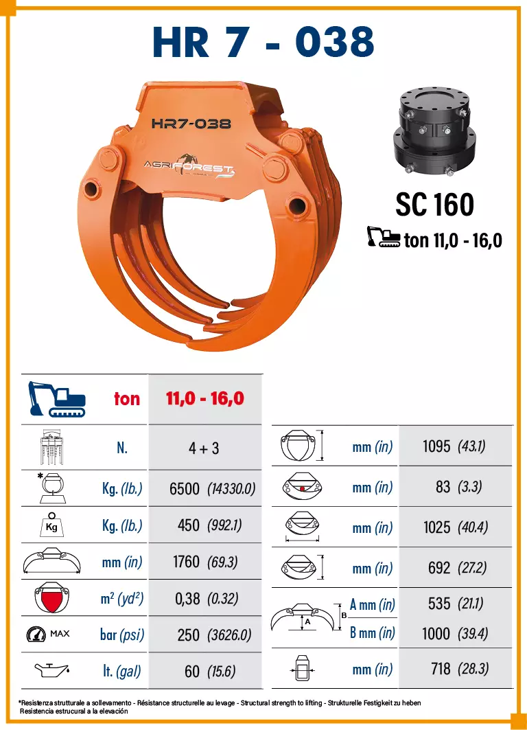 1Le forche sono costruite in acciaio HB 450 o qualità similari e il resto in acciaio S 700, con perni in 39NiCrMo3 e boccole con bronzine, per assicurare massima robustezza, resistenza all'usura e agli urti.