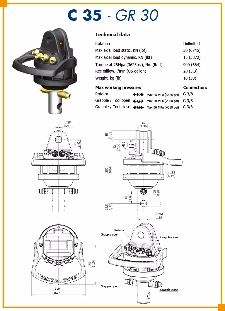 1Grazie alla foratura della parte superiore delle attrezzature AGRIFOREST, è possibile montare qualsiasi tipo di rotatore, sia ad albero – utilizzando l’apposito adattatore – che a piastra, garantendo massima flessibilità e compatibilità con diverse configurazioni.