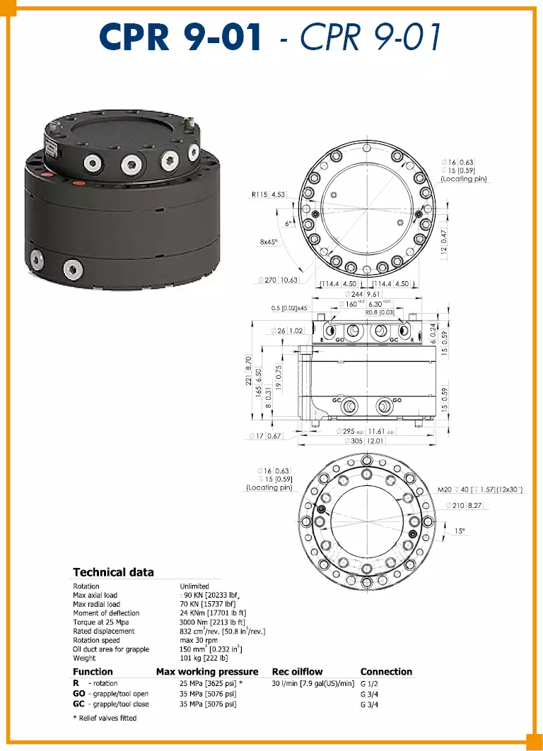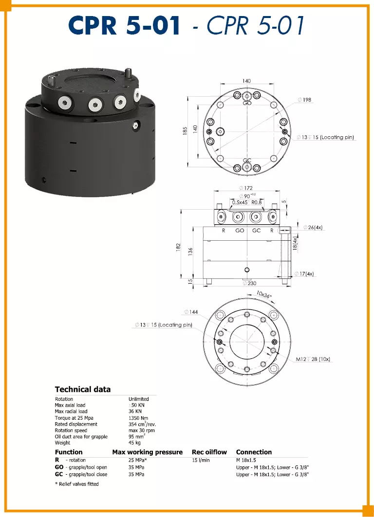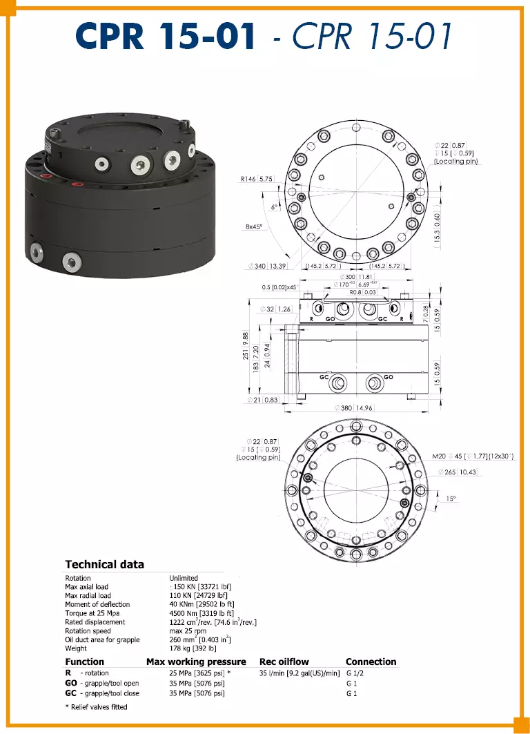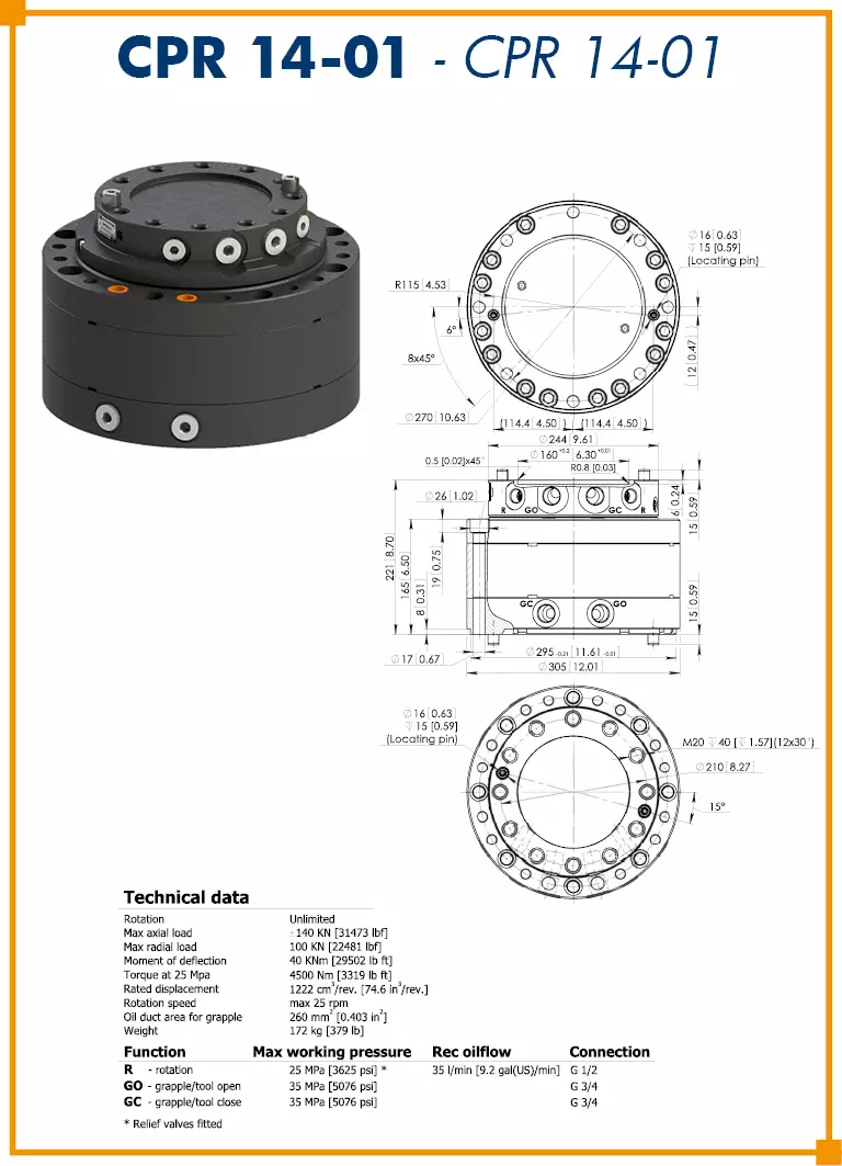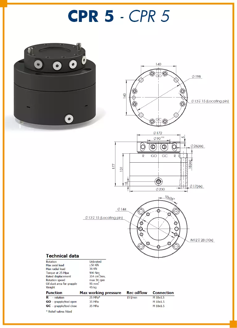 La gamma dei rotatori idraulici rigidi è indicata per escavatori e per tutte quelle applicazioni che necessitano sollevamento e rotazione con un carico sia assiale che radiale.